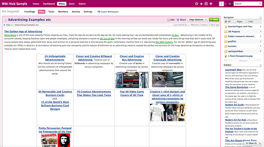 Wiki Hub is powered by PBworks.  We’ve been in the wiki business since 2005